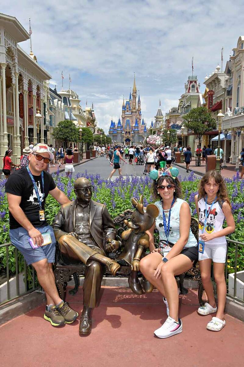 Es lo primero que te encontraras nada mas acceder al parque, toda una calle principal hasta llegar a la rotonda donde encontrareis a Walt Disney dándoos a Bienvenida de la mano de Mickey, y al fondo el Majestuoso Castillo de la Cenicienta.