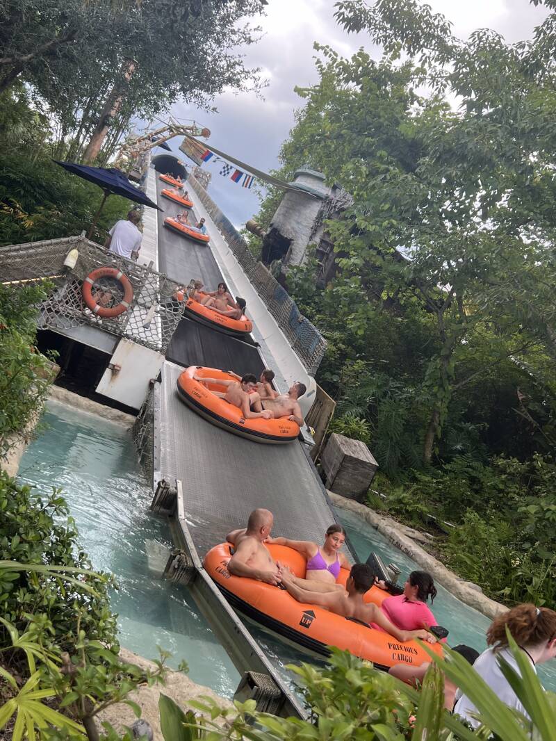 Desafia los rapidos (y los choques) en el tobogán de agua mas alto y largo de este parque Acuático